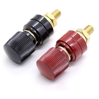 接线柱的绝缘部分是ABS,导电的螺栓是铜,固定的螺母和垫片是铁。接线柱(M8×55㎜)电流:50A耐压:3KV面板开孔:φ11.3mm